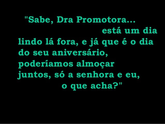 10. 10. "Sabe, Dra Promotora... está um dia lindo lá fora, e já que é o dia do seu aniversário, poderíamos almoçar juntos, só a senhora e eu, o que acha?"