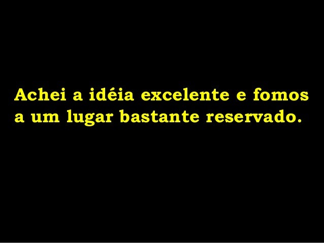 11. 11. Achei a idéia excelente e fomos a um lugar bastante reservado.