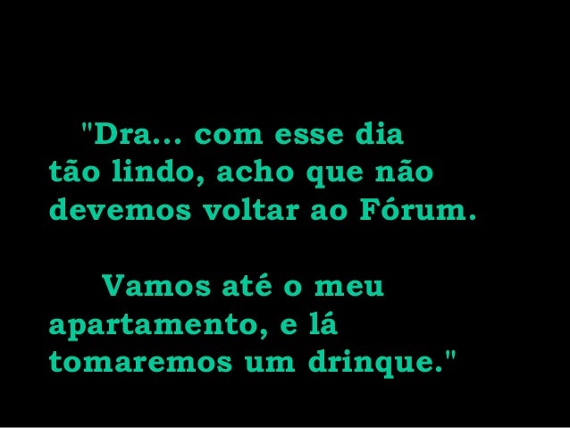 13. 13. "Dra... com esse dia tão lindo, acho que não devemos voltar ao Fórum. Vamos até o meu apartamento, e lá tomaremos um drinque."
