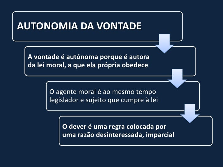 13. 13. AUTONOMIA DA VONTADE A vontade é autónoma porque é autora da lei moral, a que ela própria obedece O agente moral é ao mesmo tempo legislador e sujeito que cumpre à lei O dever é uma regra colocada por uma razão desinteressada, imparcial