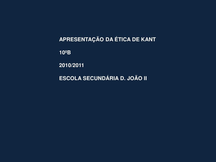 14. 14. APRESENTAÇÃO DA ÉTICA DE KANT10ºB2010/2011ESCOLA SECUNDÁRIA D. JOÃO II