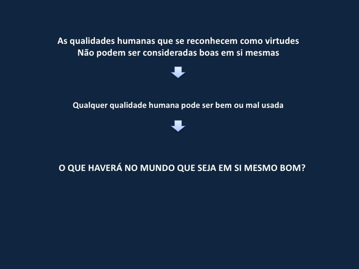5. 5. As qualidades humanas que se reconhecem como virtudes Não podem ser consideradas boas em si mesmas Qualquer qualidade humana pode ser bem ou mal usadaO QUE HAVERÁ NO MUNDO QUE SEJA EM SI MESMO BOM?