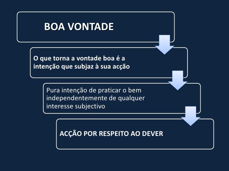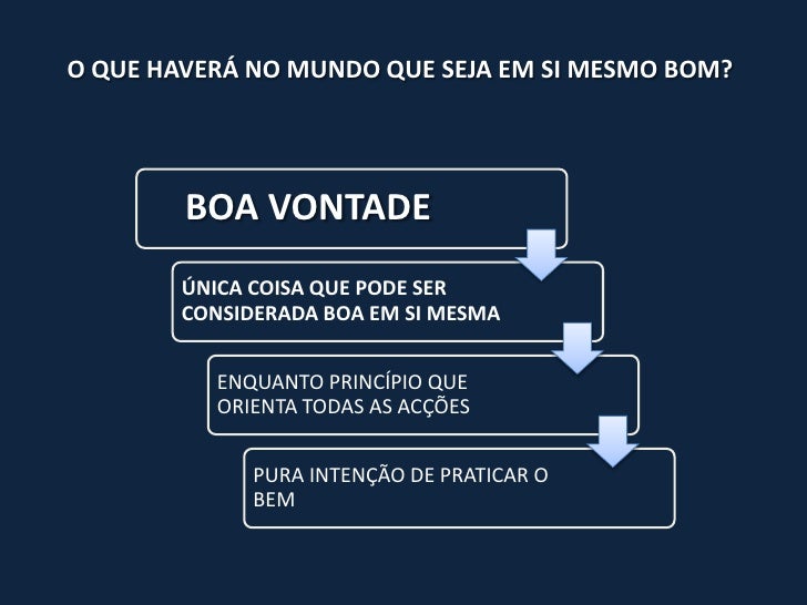 6. 6. O QUE HAVERÁ NO MUNDO QUE SEJA EM SI MESMO BOM? BOA VONTADE ÚNICA COISA QUE PODE SER CONSIDERADA BOA EM SI MESMA ENQUANTO PRINCÍPIO QUE ORIENTA TODAS AS ACÇÕES PURA INTENÇÃO DE PRATICAR O BEM