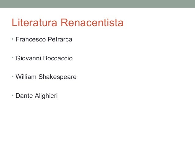 15. 15. Literatura Renacentista • Francesco Petrarca • Giovanni Boccaccio • William Shakespeare • Dante Alighieri