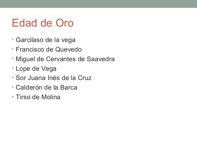 21. 21. Edad de Oro • Garcilaso de la vega • Francisco de Quevedo • Miguel de Cervantes de Saavedra • Lope de Vega • Sor Juana Inés de la Cruz • Calderón de la Barca • Tirso de Molina