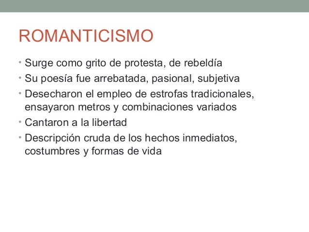 31. 31. ROMANTICISMO • Surge como grito de protesta, de rebeldía • Su poesía fue arrebatada, pasional, subjetiva • Desecharon el empleo de estrofas tradicionales, ensayaron metros y combinaciones variados • Cantaron a la libertad • Descripción cruda de los hechos inmediatos, costumbres y formas de vida