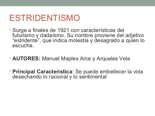 53. 53. ESTRIDENTISMO • Surge a finales de 1921 con características del futurismo y dadaísmo. Su nombre proviene del adjetivo “estridente”, que indica molestia y desagrado a quien lo escucha. • AUTORES: Manuel Maples Arce y Arqueles Vela • Principal Característica: Se puede embellecer la vida desechando lo racional y lo sentimental