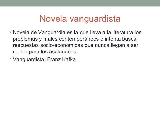 61. 61. Novela vanguardista • Novela de Vanguardia es la que lleva a la literatura los problemas y males contemporáneos e intenta buscar respuestas socio-económicas que nunca llegan a ser reales para los asalariados. • Vanguardista: Franz Kafka