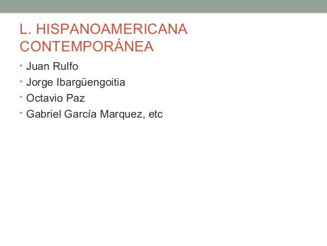 70. 70. L. HISPANOAMERICANA CONTEMPORÁNEA • Juan Rulfo • Jorge Ibargüengoitia • Octavio Paz • Gabriel García Marquez, etc