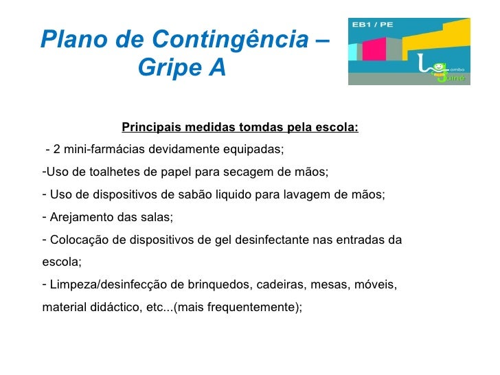 27. 27. Plano de Contingência – Gripe A <ul><li>Principais medidas tomdas pela escola: </li></ul><ul><li>- 2 mini-farmácias devidamente equipadas; </li></ul><ul><li>Uso de toalhetes de papel para secagem de mãos; </li></ul><ul><li>Uso de dispositivos de sabão liquido para lavagem de mãos; </li></ul><ul><li>Arejamento das salas; </li></ul><ul><li>Colocação de dispositivos de gel desinfectante nas entradas da escola; </li></ul><ul><li>Limpeza/desinfecção de brinquedos, cadeiras, mesas, móveis, material didáctico, etc...(mais frequentemente); </li></ul>