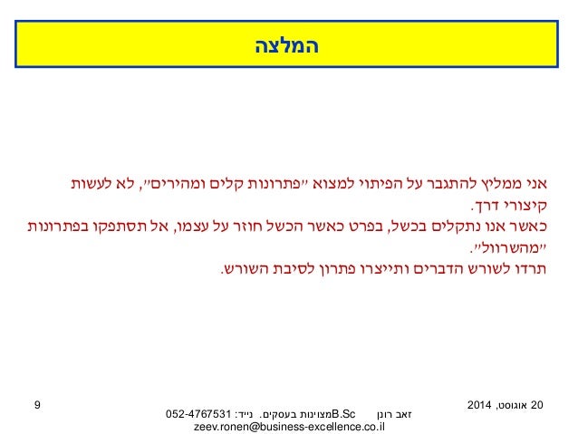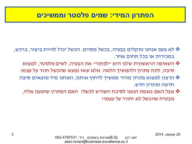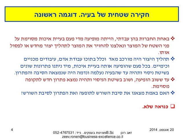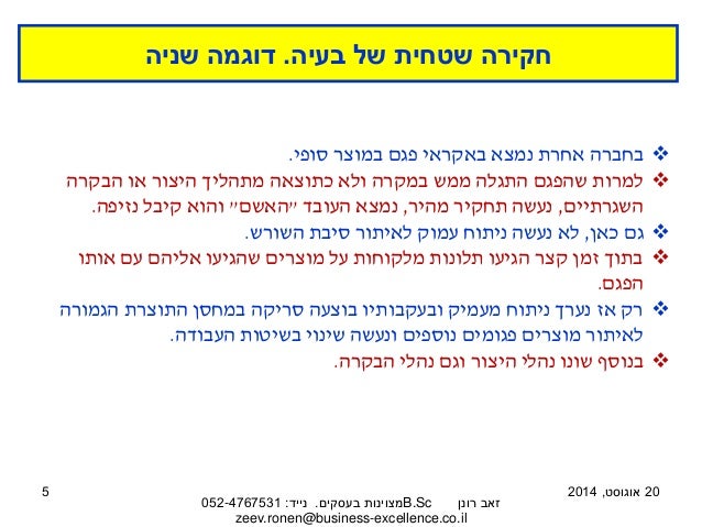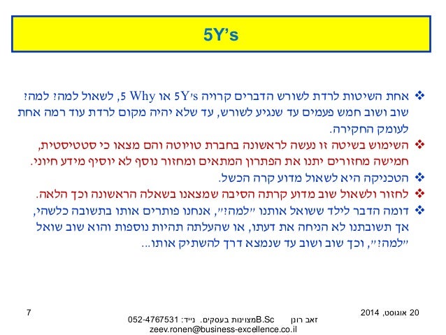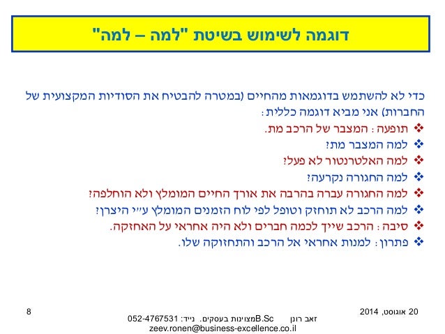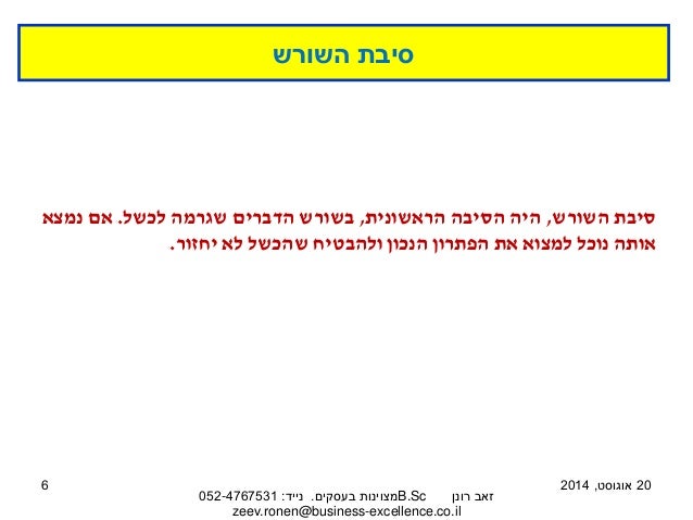 הטקסט והמצגת לקוחים מתוך המאמר ניתוח כשלים: להגיע לסיבת השורש ולייצר פתרון בשיטת "למה – למה". למאמר המלא בבלוג 'מצוינות בעסקים' לחצו כאן: