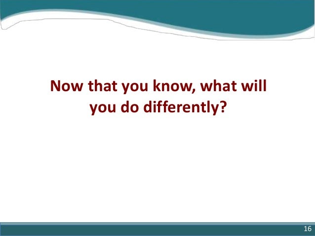 16. 16. Now that you know, what will you do differently? 16