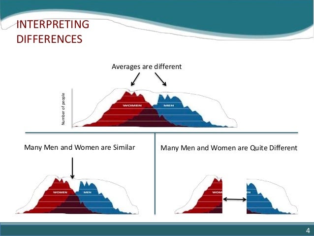 4. 4. INTERPRETING DIFFERENCES Many Men and Women are Similar Many Men and Women are Quite Different Averages are different Numberofpeople 4