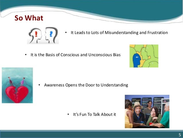 5. 5. So What • It’s Fun To Talk About it • Awareness Opens the Door to Understanding • It is the Basis of Conscious and Unconscious Bias • It Leads to Lots of Misunderstanding and Frustration 5