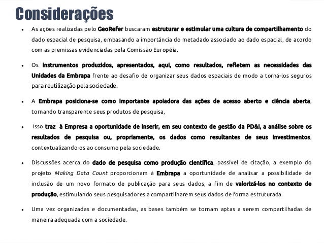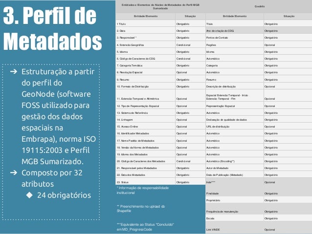 Descrição dos dados da pesquisa geoespacial na Embrapa: análise do perfil MGB e o formulário de metadados padrão do GeoNode