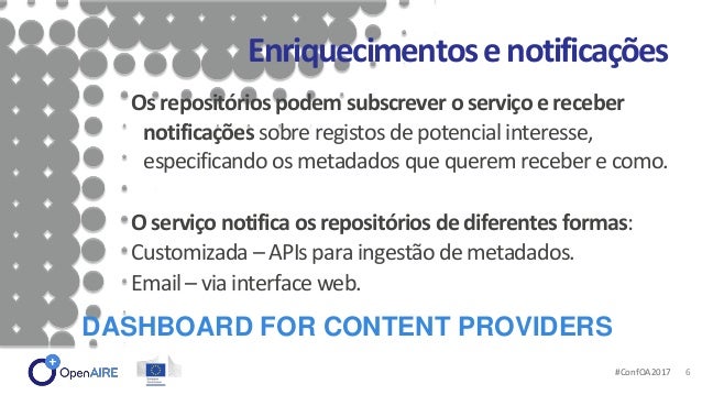 Serviços para gestores de repositórios na infraestrutura OpenAIRE: broker service e data providers dashboard