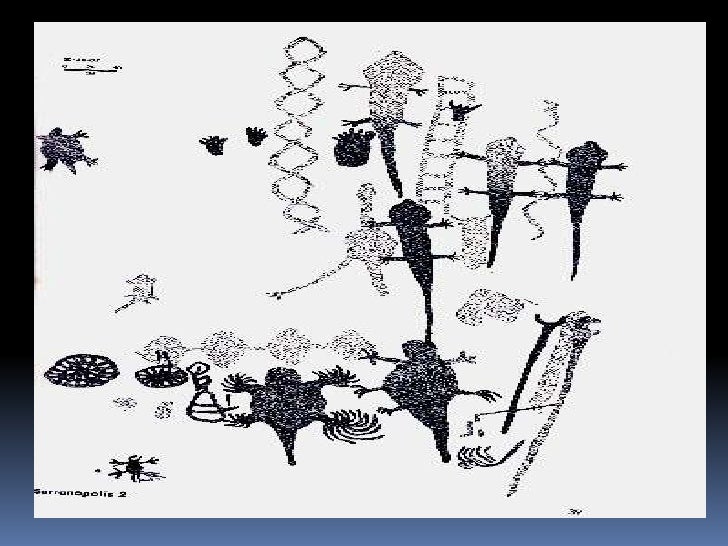 8. 8. Gravuras<br />As gravuras podem ser elaboradas através de picoteamento ou incisão.Mas, em vez de tintas, eles usaram ferramentas para desenhar em arenitos, uma rocha frágil.<br />Baixo-relevo<br />