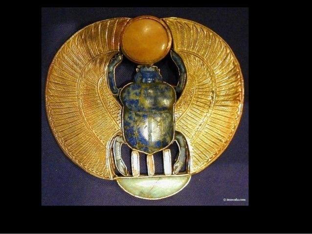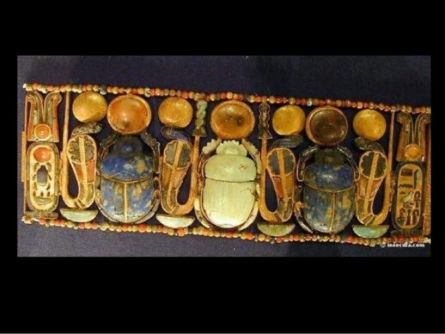 45. 45. Colar peitoral com escaravelhos e babuínosO escaravelho, na barca divina, representa odeus Sol na aurora.