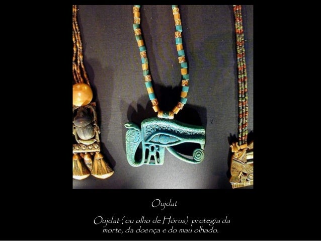 44. 44. Oujdat Oujdat ( ou olho de Hórus) protegia damorte, da doença e do mau olhado.