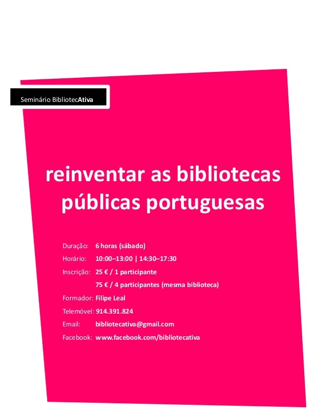 Contacte BibliotecAtiva para agendar uma sessão do seminário na sua biblioteca (bibliotecativa@gmail.pt ou telefone 914.391.824)