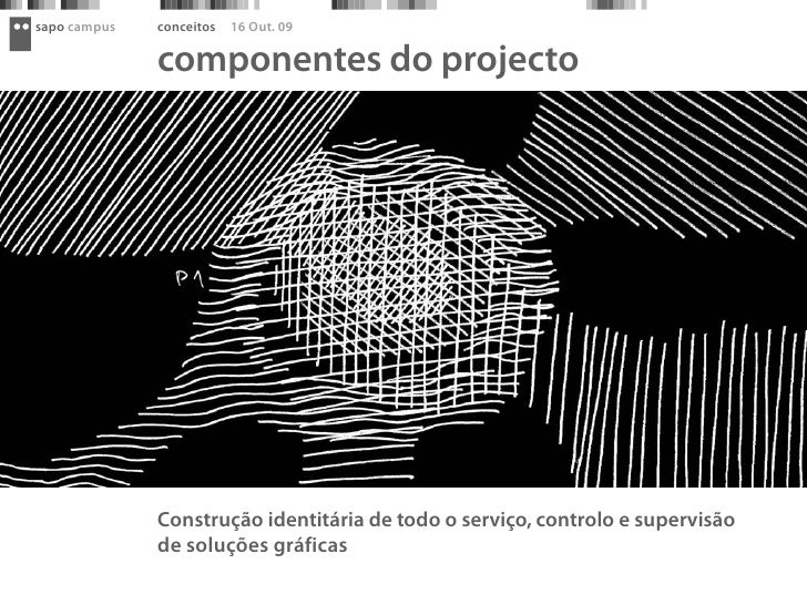 12. 12. sapo campus conceitos 16 Out. 09 componentes do projecto Construção identitária de todo o serviço, controlo e supervisão de soluções gráficas