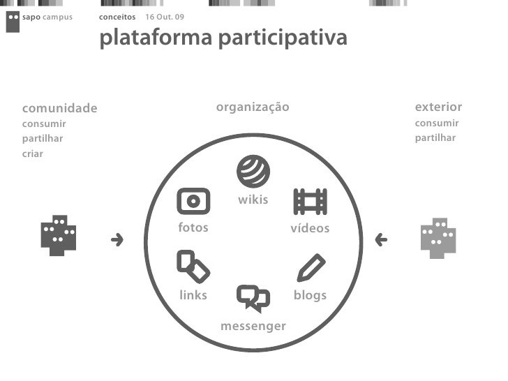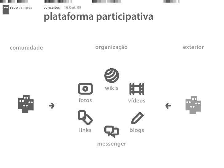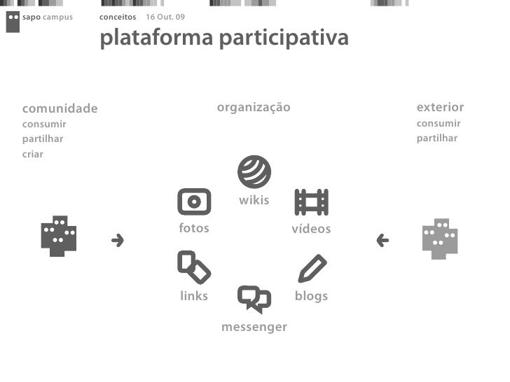 3. 3. sapo campus conceitos 16 Out. 09 plataforma participativa comunidade organização exterior wikis fotos vídeos links blogs messenger