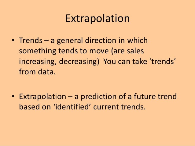 5. 5. Extrapolation • Trends – a general direction in which something tends to move (are sales increasing, decreasing) You can take ‘trends’ from data. • Extrapolation – a prediction of a future trend based on ‘identified’ current trends.
