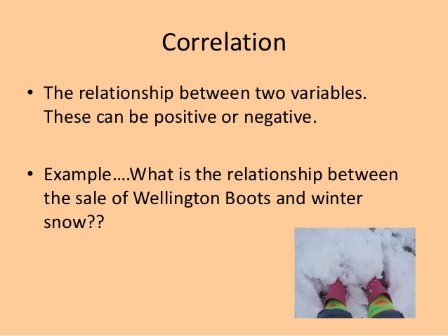 7. 7. Correlation • The relationship between two variables. These can be positive or negative. • Example….What is the relationship between the sale of Wellington Boots and winter snow??