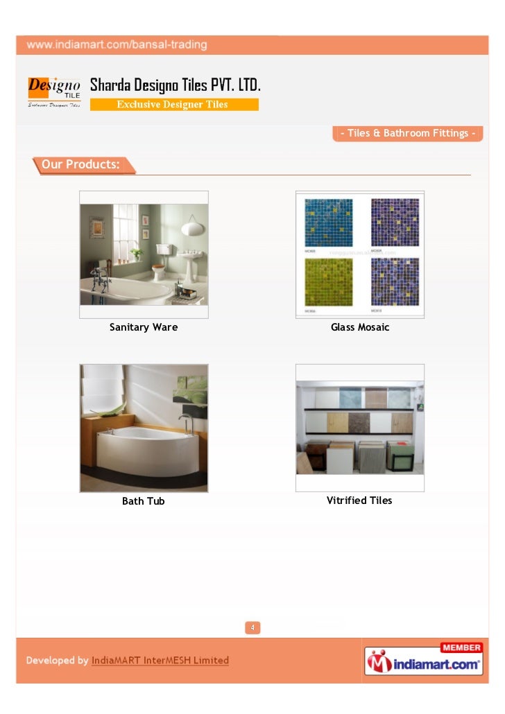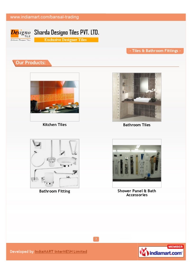 Suppliers of Kitchen Tiles And Shower Panel & Bath Accessories, Sanitary Ware And Glass Mosaic, Bath Tub And Vitrified Tiles, Bathroom Fitting And Bathroom Tiles.