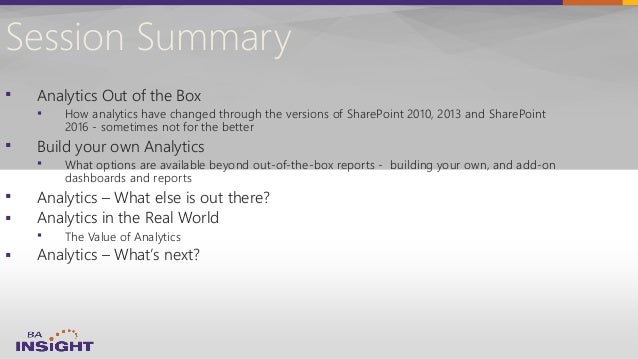 SPS NY talk on analytics in SharePoint and the options OOTB, build-your-own, and buying add-ons