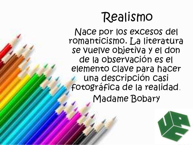11. 11. Realismo Nace por los excesos delromanticismo. La literatura se vuelve objetiva y el don de la observación es el elemento clave para hacer una descripción casi fotográfica de la realidad. Madame Bobary