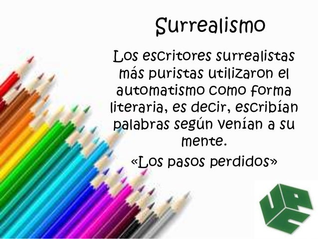 13. 13. Surrealismo Los escritores surrealistas más puristas utilizaron el automatismo como formaliteraria, es decir, escribían palabras según venían a su mente. «Los pasos perdidos»