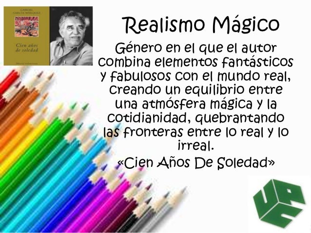 14. 14. Realismo Mágico Género en el que el autorcombina elementos fantásticosy fabulosos con el mundo real, creando un equilibrio entre una atmósfera mágica y la cotidianidad, quebrantando las fronteras entre lo real y lo irreal. «Cien Años De Soledad»