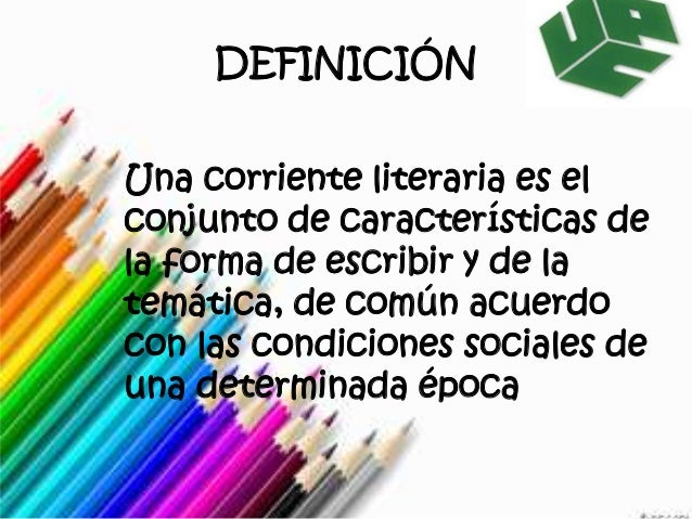 2. 2. DEFINICIÓNUna corriente literaria es elconjunto de características dela forma de escribir y de latemática, de común acuerdocon las condiciones sociales deuna determinada época