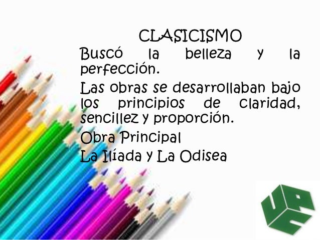 6. 6. CLASICISMOBuscó la belleza y laperfección.Las obras se desarrollaban bajolos principios de claridad,sencillez y proporción.Obra PrincipalLa Ilíada y La Odisea