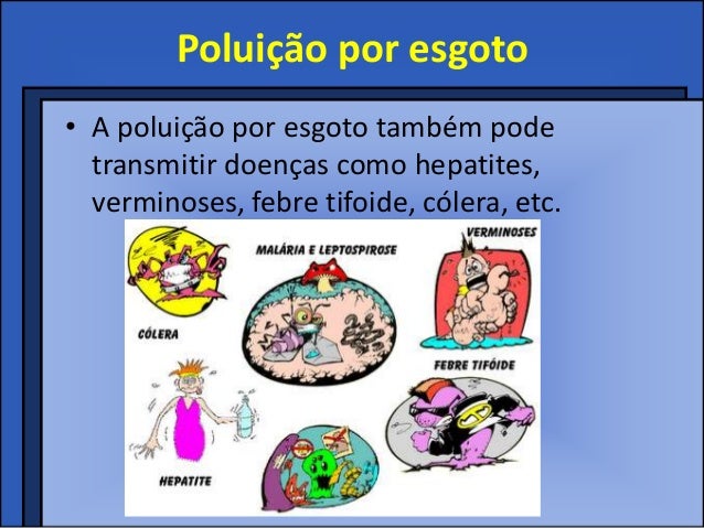 5. 5. Poluição por esgoto• A poluição por esgoto também pode transmitir doenças como hepatites, verminoses, febre tifoide, cólera, etc.