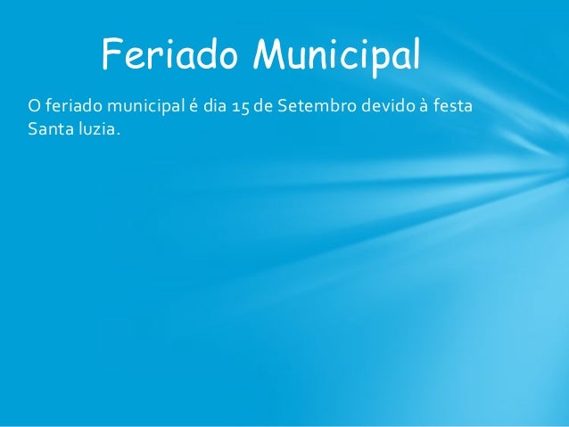 17. 17. O feriado municipal é dia 15 de Setembro devido à festa Santa luzia. Feriado Municipal