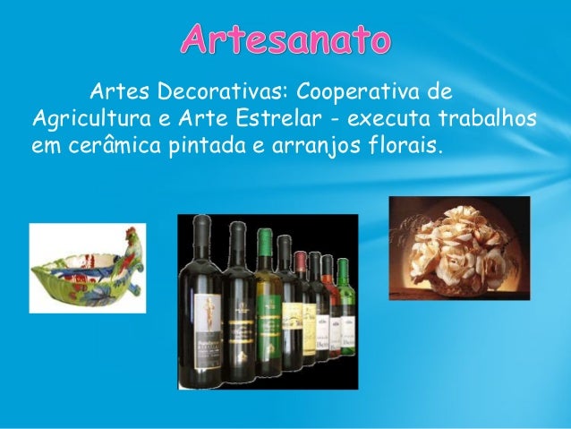 19. 19. Artes Decorativas: Cooperativa de Agricultura e Arte Estrelar - executa trabalhos em cerâmica pintada e arranjos florais.
