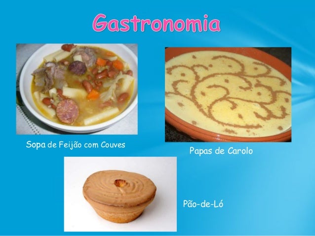 67. 67. • Os pratos principais: O mais destacável são Cherovias, Peixinho da horta e Botelho frito, cabrito, Enchidos (chouriços, morcela de cozer, morcela de assar, mouro e paio); • As Doçarias: As mais destacáveis são o Bolo de Azeite, Filhós, Arroz Doce, Papas de Carolo, entre outros.