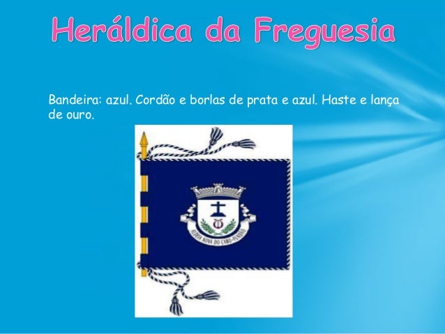 43. 43. Bandeira: azul. Cordão e borlas de prata e azul. Haste e lança de ouro.