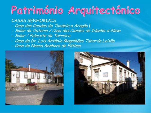 48. 48. CASAS SENHORIAIS - Casa dos Condes de Tondela e Aragão ( - Solar do Outeiro / Casa dos Condes de Idanha-a-Nova - Solar / Palacete do Terreiro - Casa do Dr. Luís António Magalhães Taborda Leitão - Casa de Nossa Senhora de Fátima