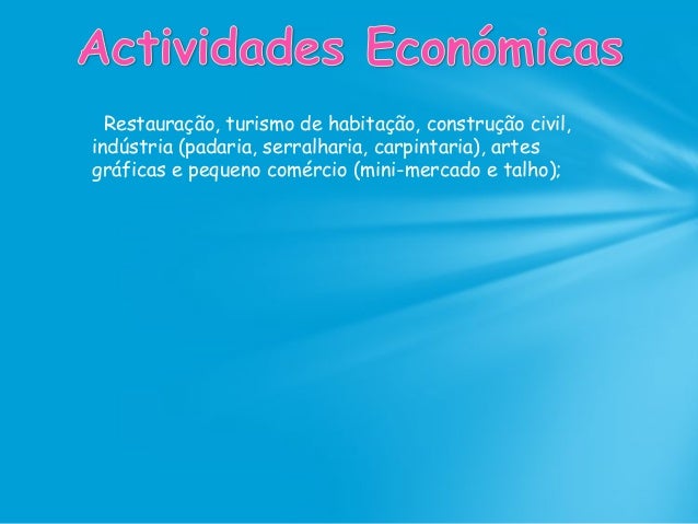 51. 51. Restauração, turismo de habitação, construção civil, indústria (padaria, serralharia, carpintaria), artes gráficas e pequeno comércio (mini-mercado e talho);