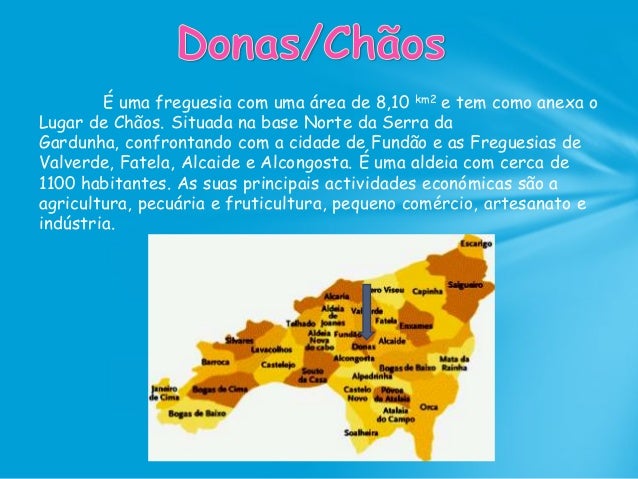 58. 58. É uma freguesia com uma área de 8,10 km2 e tem como anexa o Lugar de Chãos. Situada na base Norte da Serra da Gardunha, confrontando com a cidade de Fundão e as Freguesias de Valverde, Fatela, Alcaide e Alcongosta. É uma aldeia com cerca de 1100 habitantes. As suas principais actividades económicas são a agricultura, pecuária e fruticultura, pequeno comércio, artesanato e indústria.