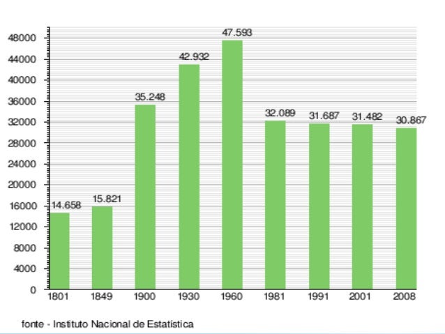 evolução da população entre 1801 e 2008.