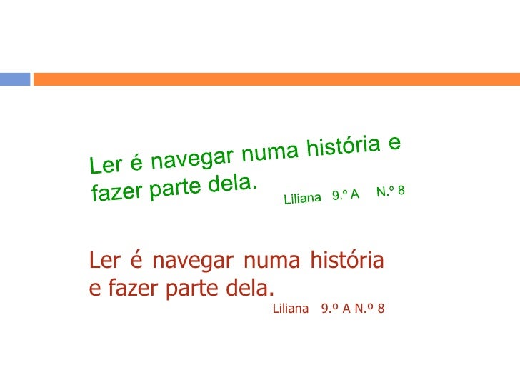 15. 15. Ler é navegar numa históriae fazer parte dela. Liliana 9.º A N.º 8