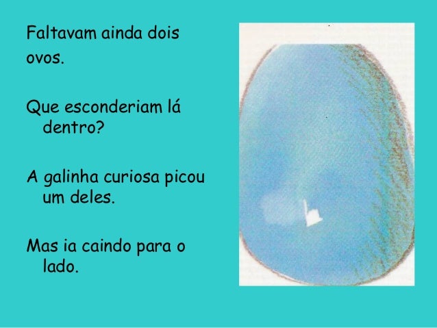 15. 15. Faltavam ainda dois ovos. Que esconderiam lá dentro? A galinha curiosa picou um deles. Mas ia caindo para o lado.