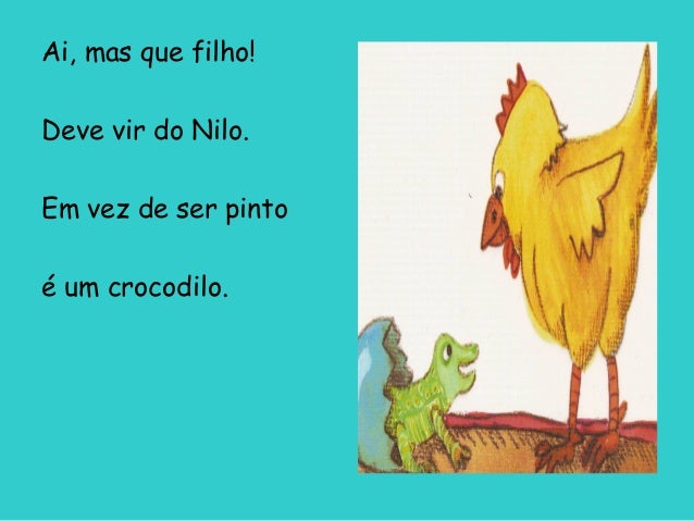 10. 10. Ai, mas que filho, eu até desmaio! Em vez de ser pinto é um papagaio. _ Exclamou a galinha.
