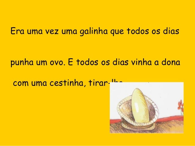 2. 2. Era uma vez uma galinha que todos os dias punha um ovo. E todos os dias vinha a dona com uma cestinha, tirar-lho.