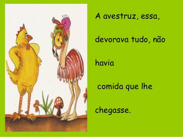 24. 24. A avestruz, essa, devorava tudo, não havia comida que lhe chegasse.
