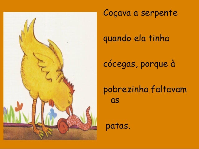 27. 27. Coçava a serpente quando ela tinha cócegas, porque à pobrezinha faltavam as patas.
